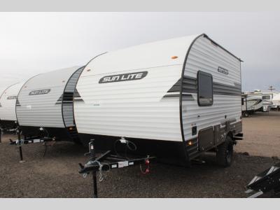 Each Sun Lite LTD travel trailer by Sunset Park RV is made with flexibility in mind. These lightweight models weigh under 3,000 lbs. for easy towing, and they offer best-in class interior storage for all your belongings. They are built with a one-piece PVC roof membrane and a durable rock guard that will help protect against rock and debris on the way to the campground. There is also an electric awning outside, along with a 100-watt solar kit, an outside shower, and more convenient features. You'll find a power roof vent in the bath, stylish window treatments, ball bearing drawer guides, and LED lights to name a few interior comforts.